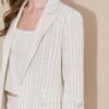 El Blazer Amalfi combina sastrería clásica con una impronta liviana y moderna. Confeccionado en lino rayado, presenta un corte recto, solapas definidas y mangas ¾ que aportan un aire relajado sin perder elegancia.