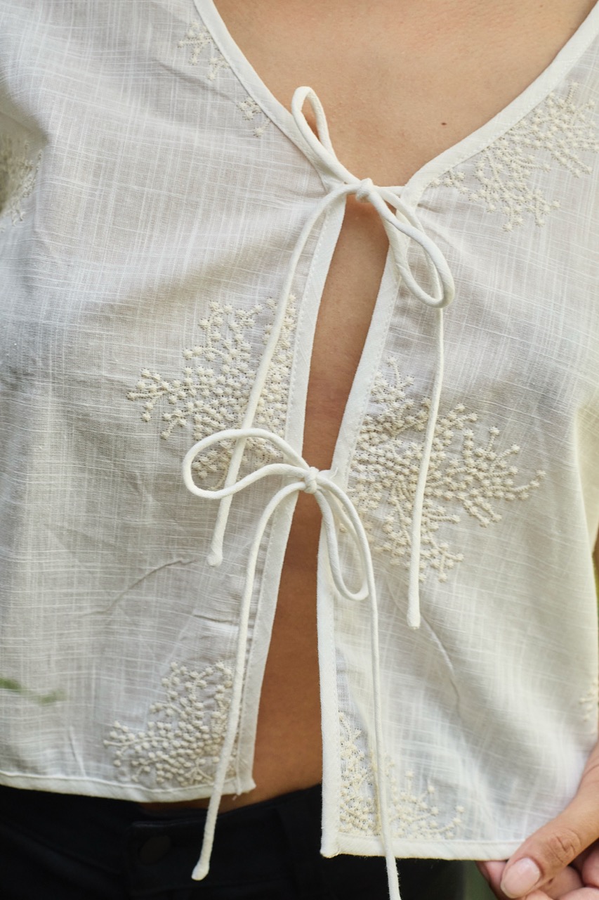 Una prenda pensada para quienes buscan detalles sutiles, materiales livianos y una estética cuidada.100% ALGODÓN. CIERRE FRONTAL CON LAZOS. MANGA 3/4 CON ELÁSTICO.
