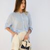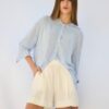 Camisa amplia de manga larga con rayas celestes y blancas, de estilo fresco y relajado. Ideal para un look casual de verano, cómoda y versátil para combinar con shorts, jeans o faldas.