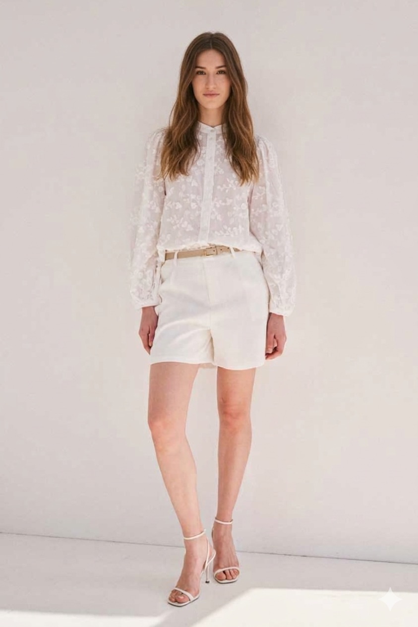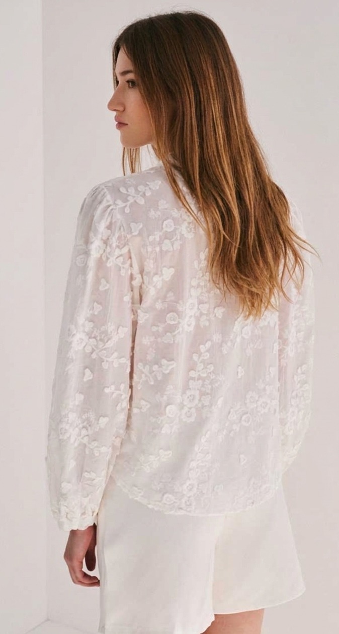 CAMISA 100% ALGODÓN. CIERRE FRONTAL CON BOTONES. DETALLE DE BORDADO A TONO.