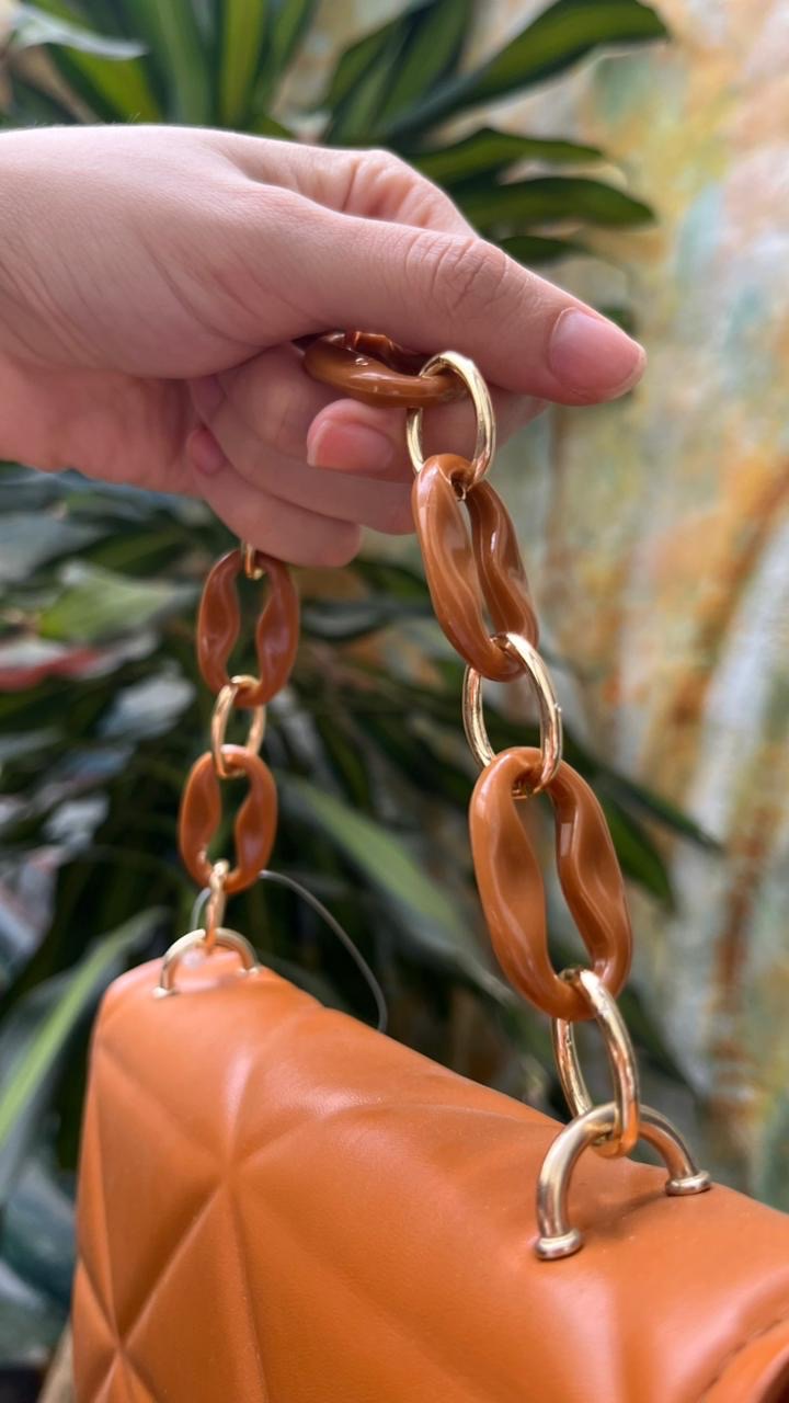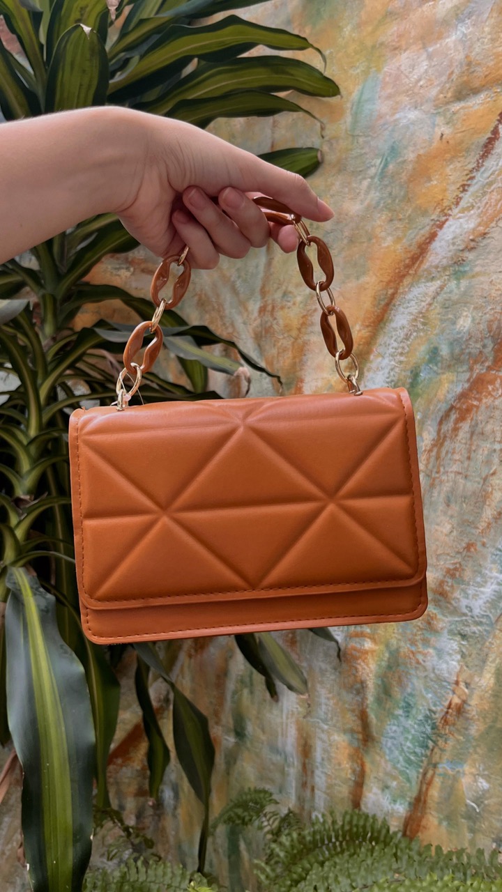 La Cartera Siena combina diseño sofisticado y practicidad. Su textura acolchada geométrica aporta carácter, mientras que la cadena en eslabones efecto carey con detalles dorados eleva el look. El tamaño ideal para acompañarte tanto en salidas diurnas como nocturnas, sumando estilo sin perder comodidad. Un accesorio atemporal que realza cualquier outfit, desde uno casual hasta uno más elegante.